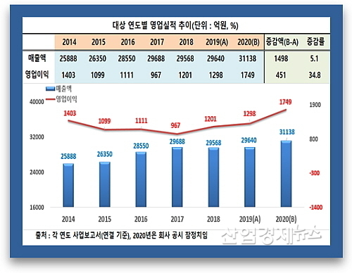 작년 매출, 전년비 5.1%↑..역대 최대에다 사상 첫 3조원 고지 등극 ‘겹경사’