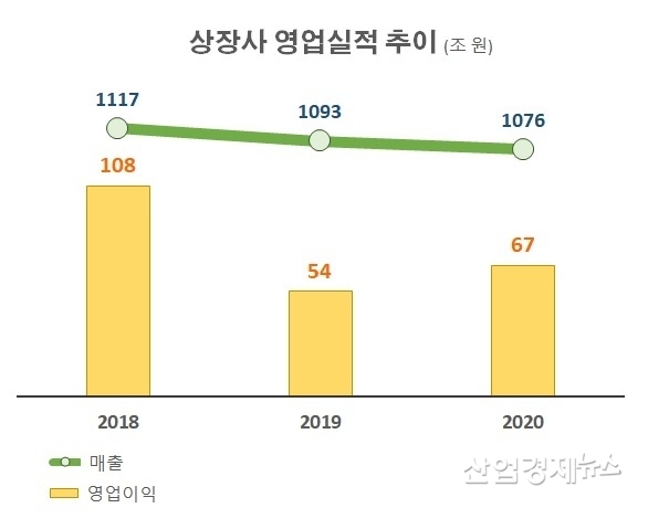 2018년 상장회사 전체의 매출액은 1116.8조원이었지만, 2019년에는 2.1% 감소한 1093.0조원이었고, 2020년에는 또다시 1.5%가 줄어든 1076.1조원인 것으로 조사됐다.
