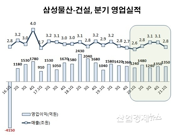 삼성물산 건설부문의 실적으로만 보면 안정된 실적을 유지하고 있는 것일 수도 있지만, 이 시기에 GS건설, DL이앤씨(舊대림산업), 대우건설 등 경쟁사들이 역대 최고 이익을 내는 등 가파른 실적 상승세을 보여서 삼성물산 건설부문의 고만고만한 실적 행진은 상대적으로 부진하다는 평가를 받고 있다.