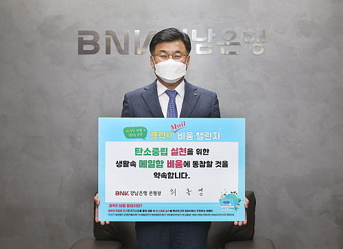 한편, BNK경남은행은 전 임직원들이 탄소중립 기후행동을 실천할 수 있게 ‘메일(Mail) 비움 챌린지 동참 기간’을 정하고 메일 완전 삭제를 권했다.