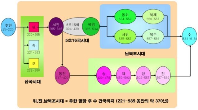 위·촉·오 삼국시대의 최후의 승자가 된 위(魏)나라의 영화는 그리 오래 가지 못했다. 사마씨가 집권한 후로 황제의 힘은 미약해 지고 사마(司馬)씨가 세운 서진(西晉)도 몇대를 넘기지 못했다.