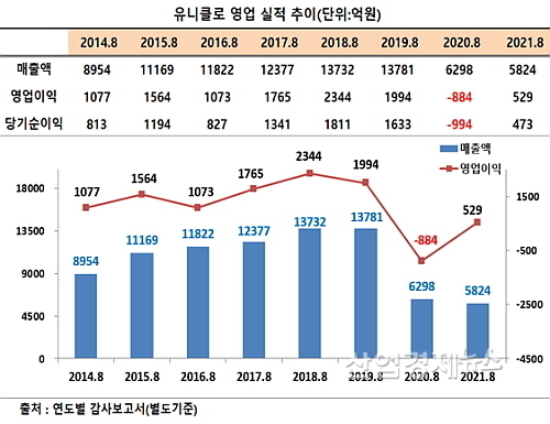 [산업경제뉴스 민경종 기자] 지난 2019년 8월 ‘노재팬 운동’에 이은 코로나19의 직격탄을 맞고 지난해 사상 최악의 성적을 기록했던 유니클로가 올 회계연도(2020.9월~2021.8월)에는 매출 감소세는 지속됐지만 손익만큼은 흑자전환에 성공한 것으로 나타났다.