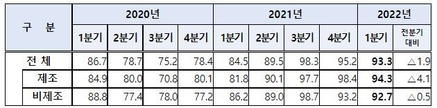 제조업은 올해 4분기 98.4에서 내년 1분기 94.3으로, 비제조업은 93.2에서 92.7로 하락할 것이라고 전망했다.