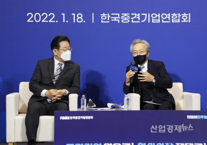 [산업경제뉴스 문성희 기자] 한국중견기업연합회(이하 중견련)은 18일 이재명 더불어민주당 대통령 후보 초청 정책간담회를 개최하고 '2022 경제 재도약을 위한 차기 정부 정책 제언'을 전달했다.