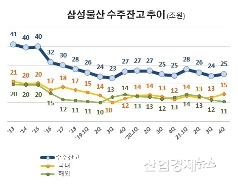 삼성물산 건설부문은 2014년 14.9조원의 매출을 보인 이후 해마다 매출이 감소해서 2021년에는 11조원까지 매출이 줄어들었다. 26.7%가 감소했다.