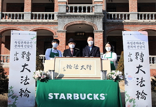 [산업경제뉴스 민경종 기자] 스타벅스 코리아(대표 송호섭)가 3.1절 103주년을 기념하여 덕수궁에서 문화유산국민신탁(이사장 김종규)에 만해 한용운 선사의 친필 휘호인 ‘전대법륜(轉大法輪)’ 유물을 기증했다.