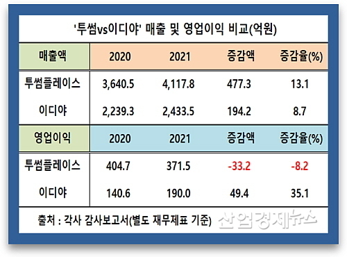 커피전문점 업계 관계자는 “2020년에는 투썸플레이스가 매출과 영업이익 증가율 모두 이디야보다 우위의 성적을 올렸지만 지난해는 손익부문에서 이디야가 앞서 명예를 회복했다”며 “이로써 외형과 손익 증가율에서 한 부문씩 서로 우위를 주고받음으로써 외국계와 토종을 대표하는 리딩기업답게 명승부를 펼친 것으로 보인다”고 말했다.