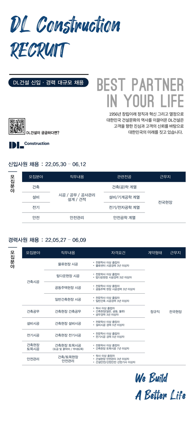 DL건설, 신입 및 경력사원 대규모 공개채용