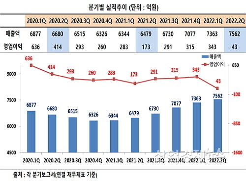 2Q 연결매출 7562억(16.7%↑), 영업익 42억(75.4%↓)..국제 원재료 시세 급등에 '휘청'