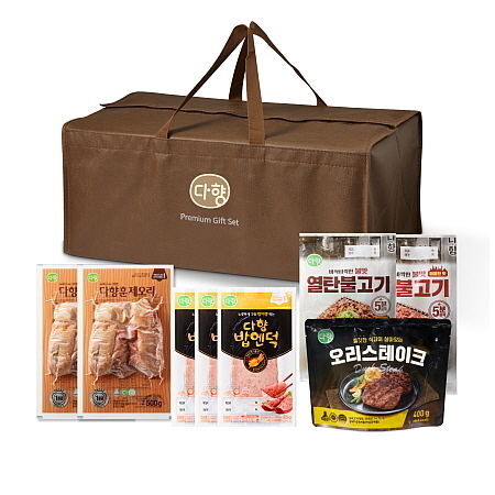 이중 대표 상품인 ‘다향 정성 선물세트’는 1등급 다향훈제오리(500g/2팩), 반찬·안주로 활용 가능한 밥엔덕(85g/3팩), 육즙 가득 부드러운 맛의 오리스테이크(400g/1팩)와 허니머스터드 소스(12g/2개), 열탄불고기 간장맛(400g/1팩), 열탄불고기 매콤한맛(400g/1팩)으로 구성됐다.