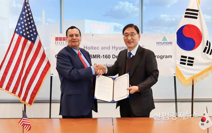 현대건설은 지난 18일(현지시간) 소형모듈원전 제휴기업인 미국 홀텍 인터내셔널社와 SMR-160의 첫 상용화를 위한 표준모델 상세설계와 사업화에 대한 착수식을 개최했다. 이는 작년 11월 현대건설과 홀텍사가 소형모듈원전 공동 개발 및 사업 동반 진출에 대한 협약 이후 1년 여만에 추진한 첫 공식 행보다.
