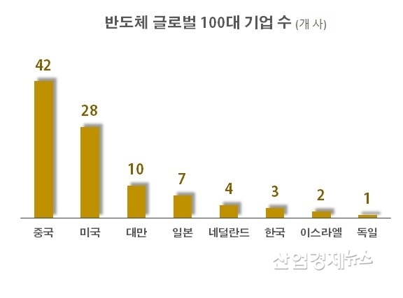 이 조사에 따르면 100대 기업 가운데 중국 기업이 42개사로 가장 많았고, 뒤를 이어 미국 28개사 대만 10개사, 일본 7개사였다. 한국은 삼성전자, SK하이닉스, SK스퀘어 3개사다.