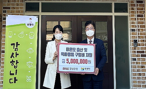 먼저 BNK경남은행 지난 15일 창원시 마산회원구 내서읍에 소재한 생명터 미혼모자의 집에 ‘후원금 500만원’을 기탁했다.