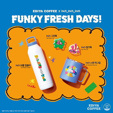또 ▲Inch 스텐머그컵은 360ml 용량으로 먼지유입 방지용 슬라이드 뚜껑이 함께 제공되며, 이번 콜라보 콘셉트인 ‘FUNKY & FRESH DAYS’ 타이포그래피를 적용하여 디자인과 실용성 두 마리 토끼를 잡았다.