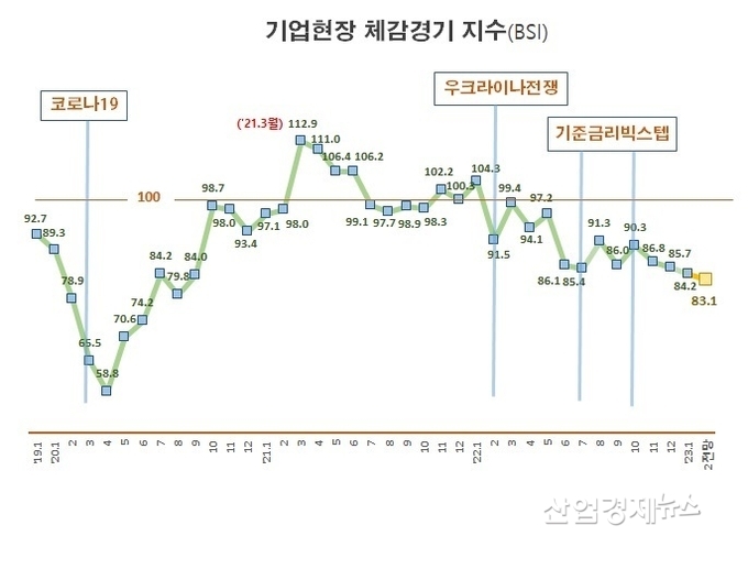 또, BSI 2월 전망치는 83.1로 조사돼 더 낮은 수치를 기록했다. 이러한 수치는 2020년 8월 이후 2년 6개월 만에 최저치다.