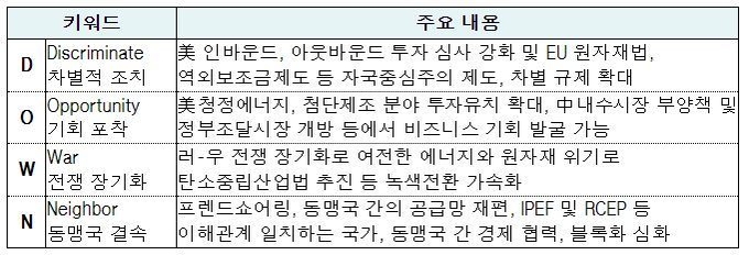 올해 세계 경제가 침체국면이 될 것으로 예상되는 가운데, 전국경제인연합회(이하 전경련)가 2023년 글로벌 정책방향을 4가지 키워드 'D.O.W.N'으로 풀이하며 키워드 별로 한국의 대응방안을 제시했다.