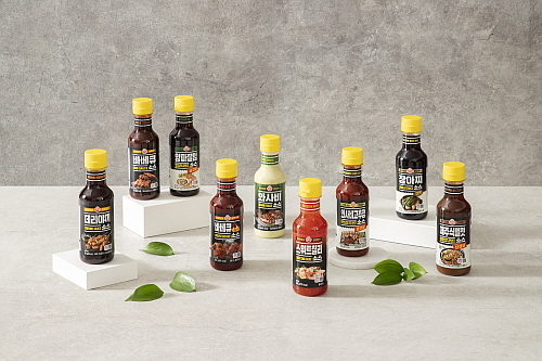 이번 리뉴얼은 친환경과 디자인 측면에서 소비 트렌드를 반영한 패키지를 통해 제품 경쟁력을 강화하기 위한 것으로, ▲와사비소스 ▲스위트칠리소스 ▲데리야끼소스 ▲바베큐소스 ▲삼겹살 양파절임소스 ▲삼겹살 제주식 멜젓소스 등 총 9종으로, 육류나 해산물의 풍미를 더하는 소스부터 각종 요리에 감칠맛을 내는 소스까지 다양하게 구성됐다.