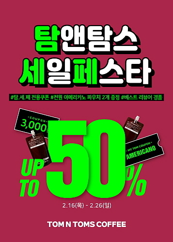 [산업경제뉴스 민혜정 기자] 커피전문점 탐앤탐스가 공식 쇼핑몰 ‘탐앤탐스몰’에서 오는 26일까지 인기 홈카페 제품을 최대 50% 싸게 파는 봄맞이 특별 기획 ‘탐앤탐스 세일 페스타’에 초대했다.