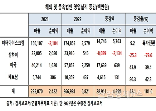 이 과정에서 종속법인 해태아이스크림과 미국, 베트남법인의 실적 개선세도 큰 역할을 한 것으로 분석된다.