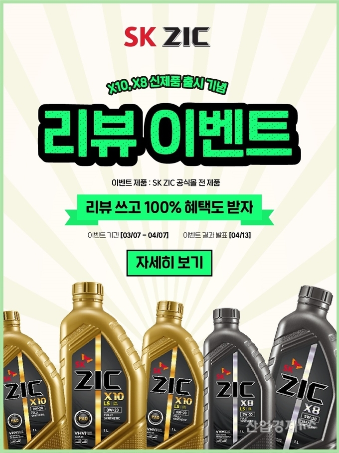 [산업경제뉴스 박진경 기자] SK이노베이션 윤활유 자회사인 SK엔무브가 SK ZIC(지크) 신제품 X8, X10을 출시하고 출시기념 이벤트를 실시한다.