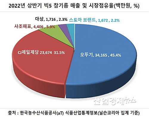 2022년 상반기 점유율, 오뚜기 45.4%→CJ제일제당 31.5%→사조해표 5.9% 순