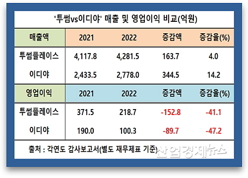 [산업경제뉴스 민경종 기자] 국내 프랜차이즈(가맹사업) 커피전문점 라이벌 투썸플레이스(이하 투썸)와 이디야커피(이하 이디야)의 지난해 영업실적을 비교한 결과, 매출과 영업이익 증가율에서 서로 한개 부문씩 우위를 주고받은 것으로 나타났다.