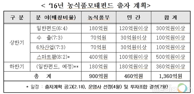(미디어온) 농림축산식품부는 2016년 농식품펀드 운용계획을 확정발표하였다.