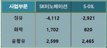 SK이노베이션 및 S-OIL 2023년 2분기 부문별 영업이익 (억 원)