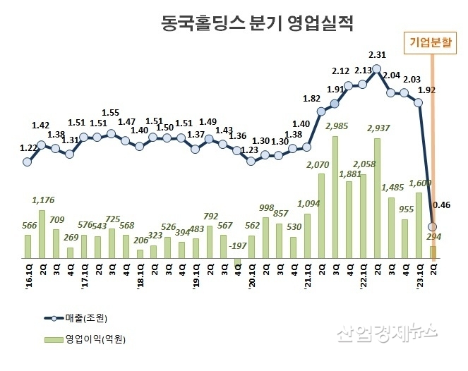 [산업경제뉴스 문성희 기자]  지난 6월 1일 자로 법인분할한 동국제강그룹의 동국홀딩스(대표이사 장세욱)가 14일 반기 실적을 공시했다.