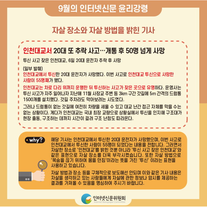 해당 프로젝트는 지난 4월 한국생명존중희망재단의 민간협력 자살예방사업 수행기관으로 인신위가 최종 선정되어 연간 프로젝트로 추진하고 있으며 참여대상을 인터넷신문 매체에서 대학신문으로 확대하여 사업을 수행하고 있다.