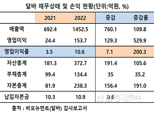 2022년 매출 전년비 109.8%, 영업이익도 529.9%나 폭증..‘알짜’