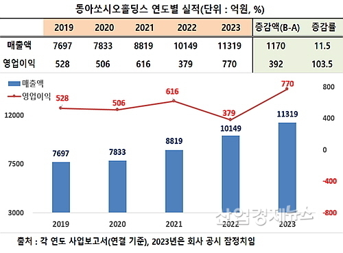 동아쏘시오홀딩스, 외형·손익 사상 최대..비결은?