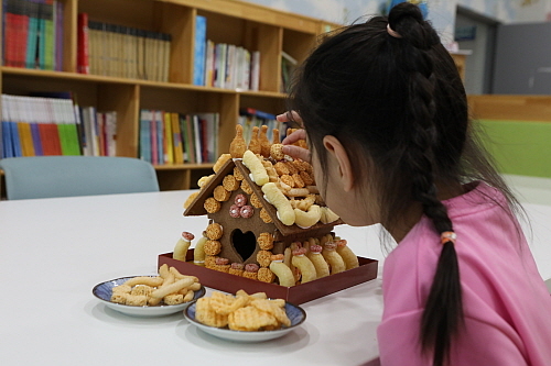 특히 CJ프레시웨이의 키즈 전문 영양사, 셰프로 구성된 강사진은 어린이 눈높이에 맞는 커리큘럼을 준비했다. 아이들은 빵, 과일, 과자 등 다양한 재료를 활용해 제각기 개성 있는 모양으로 케이크를 꾸몄다.
