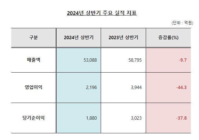 영업이익은 전년 동기(3944억원) 대비 44.3% 감소한 2196억원을 기록했다.
