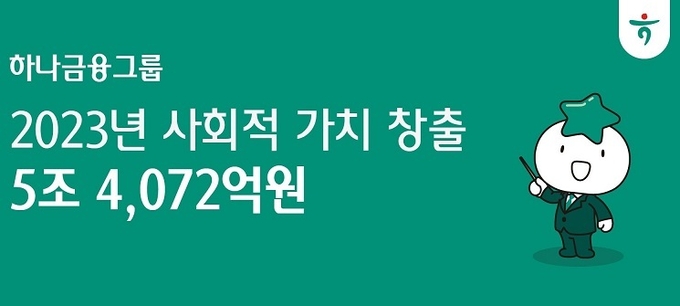 하나금융그룹(회장 함영주)은 지난 11일, 「2023 ESG 임팩트 보고서」를 통해 지난 한 해 동안 환경‧사회‧지배구조 및 경제 간접 기여 등 ESG 활동의 결과로 총 5조 4,072억 원의 사회적 가치를 창출했다고 밝혔다.