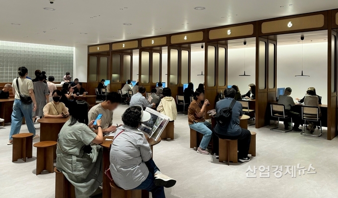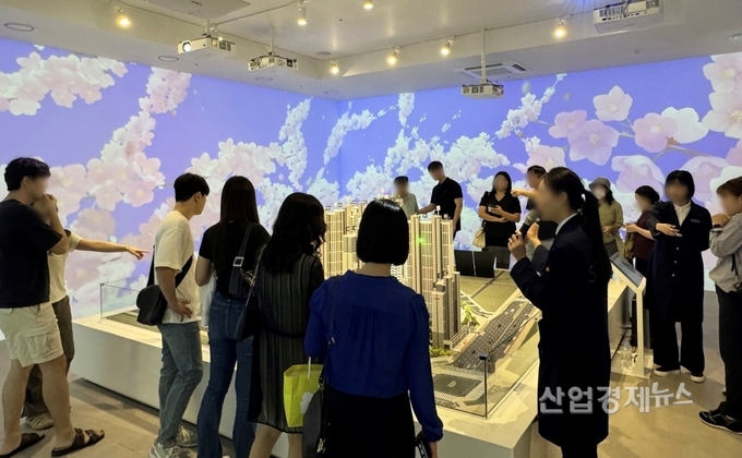 이른 아침부터 주택전시관을 찾은 방문객들이 몰려 입장 대기줄이 100m이상 이어지는 진풍경이 벌어졌다. 내부에는 단지의 입지와 상품을 살피려는 수요자들로 장사진을 이뤘다. 방문객들은 젊은 층부터 중∙장년층까지 다양했다. 대구에서 희소성 높은 더블 초역세권 입지에 대한 지역민들의 높은 관심 탓에 대구 전역에서 발길이 이어졌다. 특히 주택전시관 외부에는 떴다방(이동식 중개업소) 관계자까지 가세해 분양 열기를 짐작케 했다.