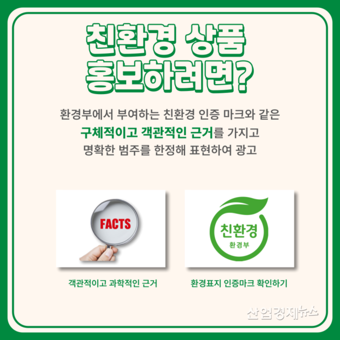 ![친환경 상품이라고 홍보를 하려면 환경부에서 부여하는 친환경 인증 마크와 같은 구체적이고 객관적인 근거를 갖고 명확한 범주를 한정해 표현할 필요가 있다. [자료=공정거래위원회]](http://www.entropytimes.co.kr/data/photos/20250624/art_17497133700018_e50782.png)