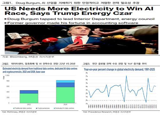 미국이 ‘chatGPT’ 등을 필두로 폭발적인 성장세를 보이고 있는 글로벌 인공지능(AI) 산업을 지배하기 위해서는 안정적이고 더 저렴한 전력이 필요하다는 Doug Burgum 의장의 발언도 주목할 만하다.