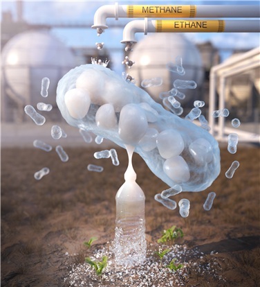 연구에 따르면 에탄이 편성 메탄산화균의 핵심 대사 과정에 영향을 미친다는 것. 에탄은 단독으로는 세균의 성장에 기여하지 않지만, 메탄과 함께 존재할 경우 동시 산화되어 아세테이트라는 대사산물을 생성하는데 이 물질이 세균의 세포 성장을 억제하면서도, PHB라는 생분해성 바이오플라스틱의 생산을 촉진하는 역할을 한다는 것이 핵심적인 내용이다.