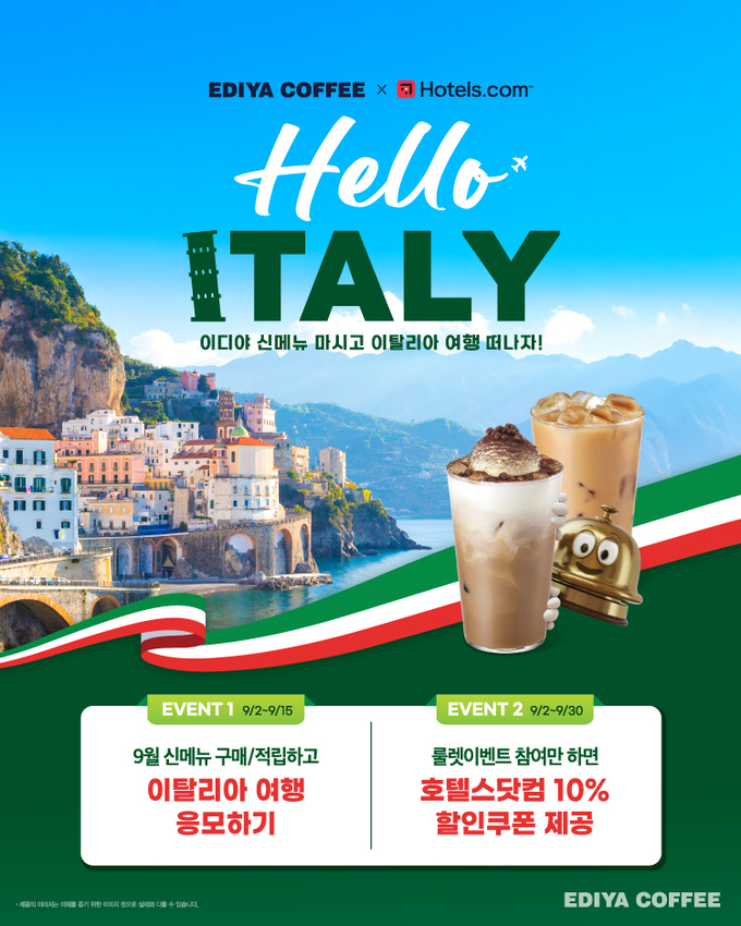 [산업경제뉴스 민혜정 기자] 이디야커피가 가을을 맞아 나폴리맛피아 권성준 셰프와 협업한 신메뉴와 이탈리아여행권, 커피다이닝까지 다채로운 프로모션의 자리로 초대했다.