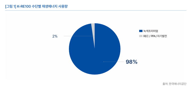 ![2024년 기준 국내 기업 재생에너지 사용량 전체의 98%가 녹색프리미엄에 해당함. 기업이 K-RE100을 통해 구매한 전력량(8.95TW) 중 8.79TWh가 녹색프리미엄을 통해 조달되고 있다. [자료=기후솔루션]](http://www.entropytimes.co.kr/data/photos/20251042/art_17604227546761_c92d1e.png)