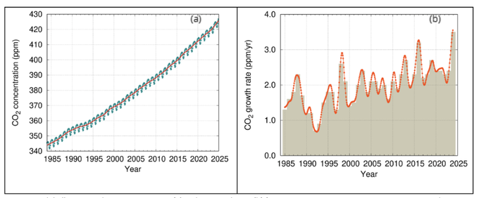 WMO가 15일(현지시간) 발표한 ‘온실가스 보고서(Greenhouse Gas Bulletin)’에 따르면, 이번 급증은 인간 활동에 의한 지속적인 배출과 더불어 산불 증가, 그리고 산림과 해양 등 탄소 흡수원의 흡수 능력 저하가 복합적으로 작용한 결과다.