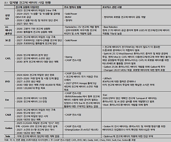[산업경제뉴스 민경종 기자] 최근 국내외에서 스포트라이트를 받고 있는 휴머노이드 로봇 등 ‘로보틱스’ 시대를 맞아 이 기기에 전력을 공급하는 에너지원 중 하나로 전고체 배터리가 주목을 받고 있다.