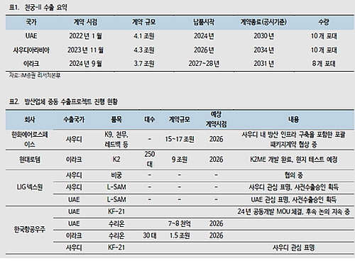 변 연구원은 보고서를 통해 지난 2월 말 시작된 이란 공습 사태 이후, 중동 국가들의 대공미사일 소모가 극심해지고 있다. 이에 따라 이미 한국과 계약을 체결한 UAE(22년), 사우디(24년), 이라크(25년)는 기존에 도입하기로 한 천궁-II의 인도 시기를 앞당길 것으로 예상된다.