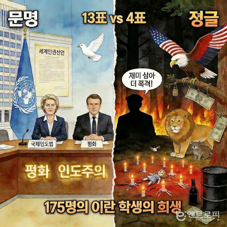 미국의 최초 폭격으로 꽃 같은 이란 학생 175명이 죽었다. 하지만 이 사실은 지구촌 전체의 관심거리가 아니다. 세상은 오로지 내 지갑에서 얼마나 더 연료비로 나갈 것인지만 중요하다. 유엔 안보리 이사국 대표들에게도 그 가련한 어린 생명들은 인권의 대상인 ‘민간인’ 축에도 못드는 생물학적 동물일 뿐이다.