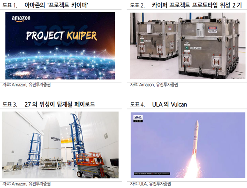 외신과 지난 4일 발간된 유진투자증권 보고서(정의훈 연구원, 2025.4.4.)에 따르면 오는 9일 아마존의 저궤도 위성통신 서비스를 지칭하는 '카이퍼 프로젝트'의 27기의 위성 발사가 예정되어 있다.