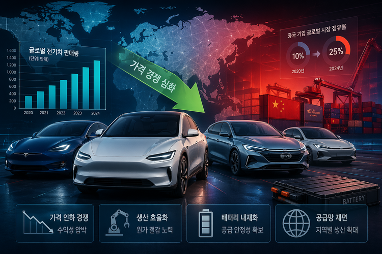 전기차 시장은 여전히 성장 단계에 있지만, 경쟁 환경은 빠르게 변화하고 있다. 가격 경쟁과 공급망 재편이 동시에 진행되면서 기업들은 비용 구조, 생산 전략, 시장 접근 방식 전반을 재조정해야 하는 상황이다.