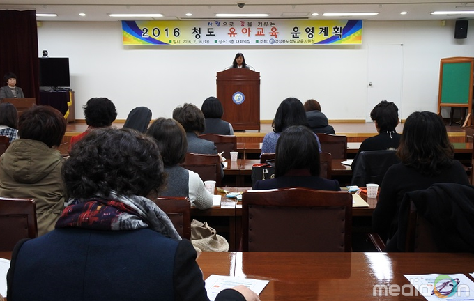 (미디어온) 경상북도 청도교육지원청은 지난 16일(화) 3층 대회의실에서 관내 공·사립유치원 교원을 대상으로 ‘사랑으로 꿈을 키우는 행복한 유아교육 실현, 2016 청도 유아교육운영계획’연수를 실시했다고 19일 밝혔다.