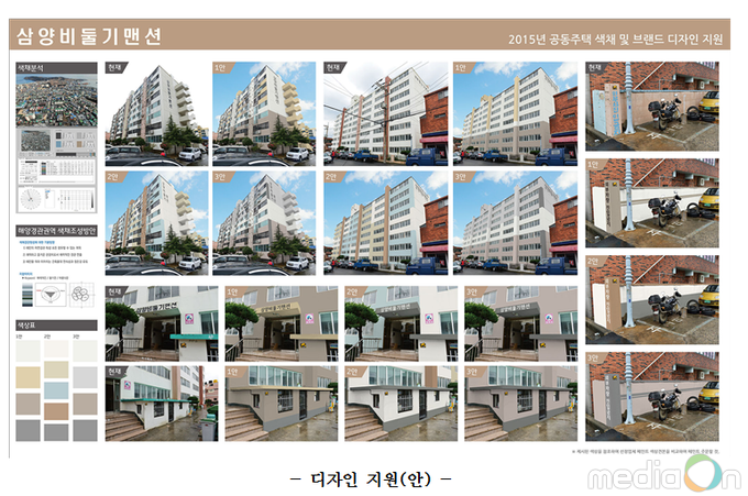 지원 대상으로 선정되면 현장조사 후 입주자 대표의 의견을 반영해 디자인 2 ~ 3개 안을 지원하고, 도장은 공동주택 입주자 대표회의에서 자체적으로 시행한다.