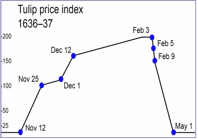 현재의 가상화폐 투자광풍 현상과 유사한 사례가 17세기에 네덜란드에서 벌어진 사례가 있다.